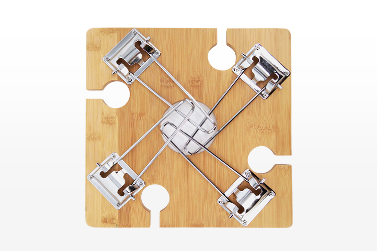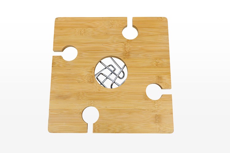 Serves as a wine bottle stand, wine glass holder & serving tray.