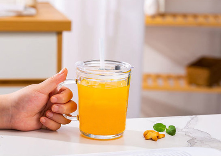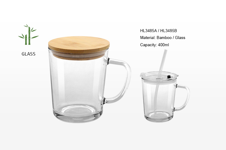 400ml Glass cup with 2 available lids with a glass handle